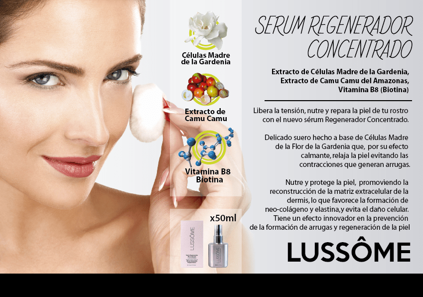 Libera la tensión, nutre y repara la piel de tu rostro con el nuevo sérum Regenerador Concentrado de Lussôme. Delicado suero hecho a base de Células Madre de la Flor de la Gardenia que, por su efecto calmante, relaja la piel evitando las contracciones que generan arrugas.